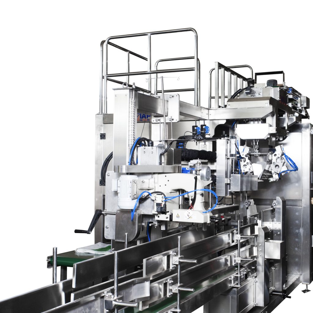 Automatic bag loading – PP woven bags are picked and positioned automatically.
